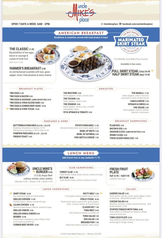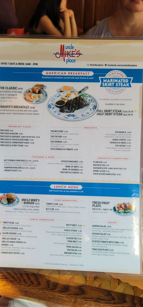 Uncle Mike's Place Menu (2025 Update)